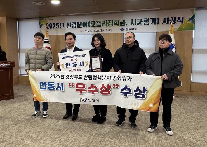 [뉴스노크=김인호 기자] 안동시는 경상북도가 실시한 2025년 ‘산림분야 종합평가’에서 산림정책 분야 ‘우수’, 산림소득 분야 ‘장려’를 수상하며 산림행정 전반의 추진 성과와 실행력을 인정받았다.