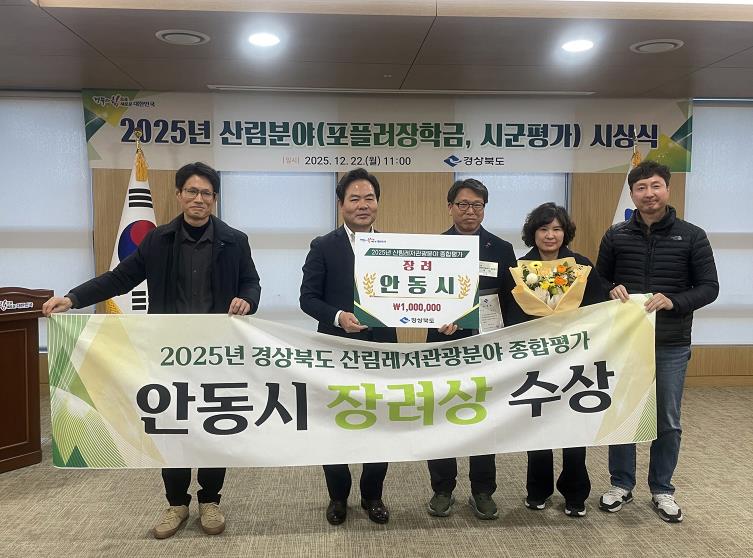 [뉴스노크=김인호 기자] 안동시는 경상북도 주관 12월 22일 ‘2025년 산림레저관광분야 종합평가’에서 장려상을 수상했다고 밝혔다.