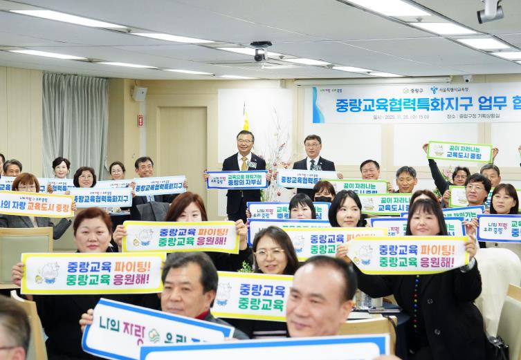 [뉴스노크=김인호 기자] 중랑구는 11월 26일 구청 4층 기획상황실에서 서울특별시교육청과 ‘중랑교육협력특화지구’업무협약을 체결했다. 이번 협약은 2019년 혁신교육지구, 2023년 미래교육지구 추진에 이어 지역 교육 협력사업을 확장하는 단계로, 구·교육청·학교 간 협력 구조를 체계화해 지역 기반 교육 환경을 강화하기 위해 마련됐다.