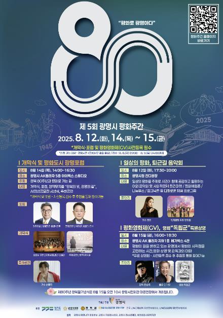 [뉴스노크=김인호 기자] 광명시가 광복 80주년을 맞아 역사적 의미를 되새기고 일상 속 평화의 가치를 돌아보는 ‘제5회 광명시 평화주간’ 행사를 진행한다.