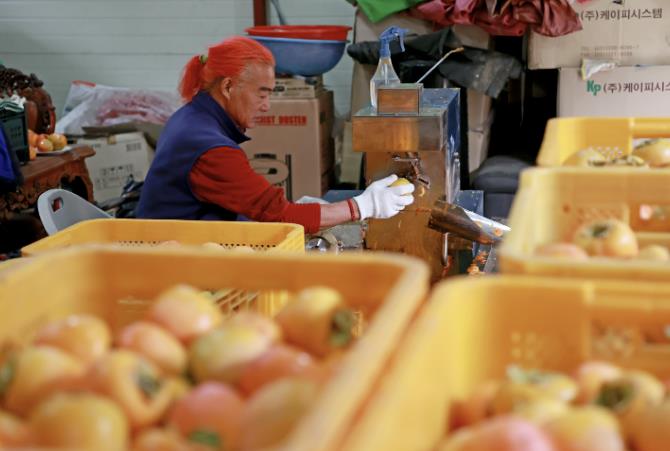 | ▲ 괴산군의 한 농가에서 곶감을 만들기 위해 작업하고 있다 |
