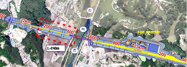 이번 사업은 기존 토공(성토)노반 L=240m 구간을 교량 L=210m로 변경하는 내용이다.