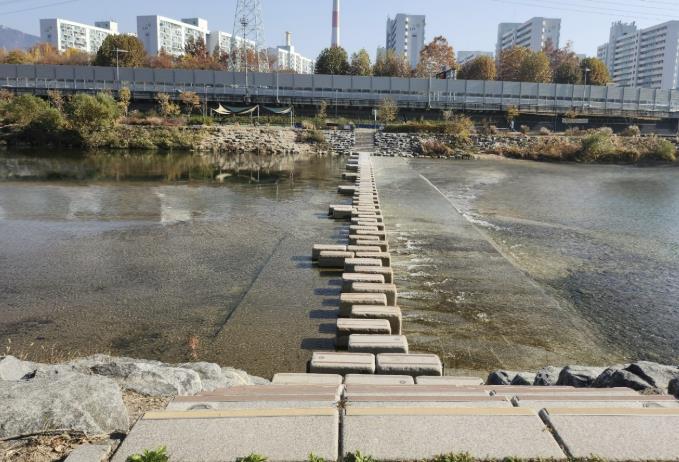 주민들의 보폭을 고려해 징검다리 간격을 기존 40cm에서 30cm로 조정해 안정성을 높였다.