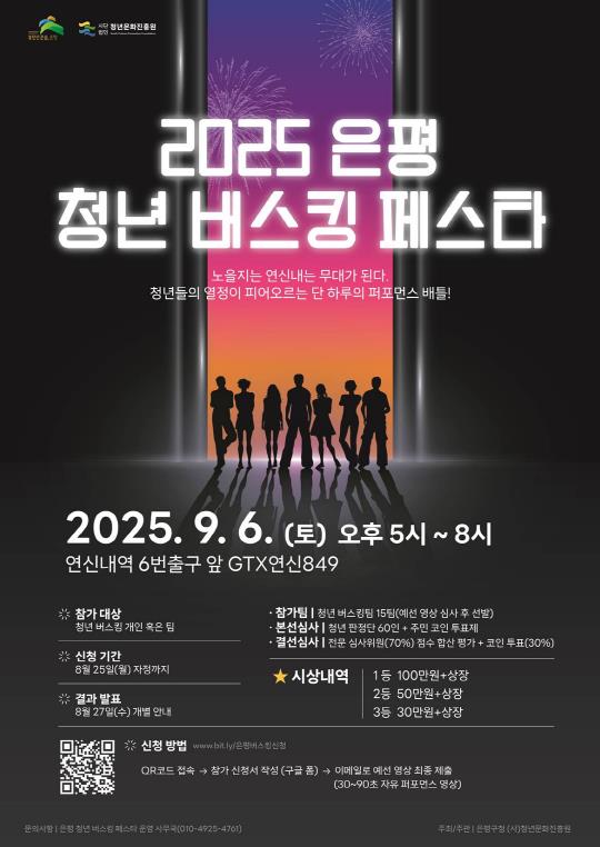 경연 참가자 모집은 오는 25일까지이며, 경연에 신청하려면 포스터 내 큐알(QR)코드로 신청서를 작성하고 30초~90초 공연 영상을 이메일로 제출하면 된다.
