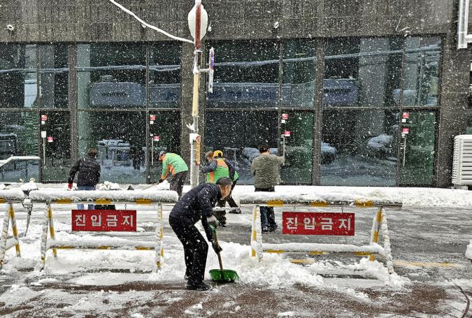 ▲ 부천시 공직자들이 시민 안전을 위해 제설작업을 진행하고 있다.