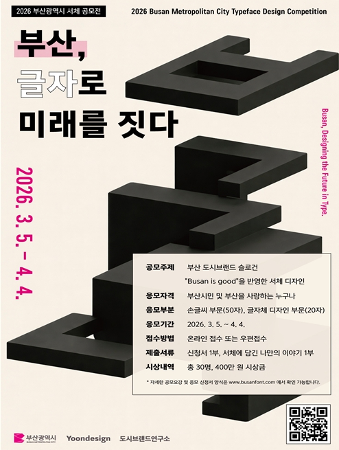 대상 수상작은 전문가 보완 절차를 거쳐 ‘시민공모 서체’로 개발돼 부산 도시브랜드 자산으로 활용될 예정이다.
