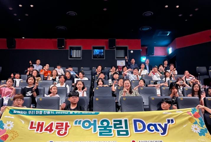 ▲ 내당4동 롯데시네마 대구광장에서 열린 마을 돌봄 특화사업 ‘내4랑 어울림 날(Day)!’ 영화관람 모습