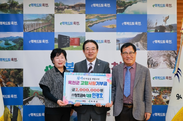[뉴스노크=김인호 기자] 옥천군 관내 기업 ㈜창조금속 민경호 대표가 지난해와 마찬가지로 고향사랑기부금 200만 원을 기탁하며 옥천의 발전을 응원했다.