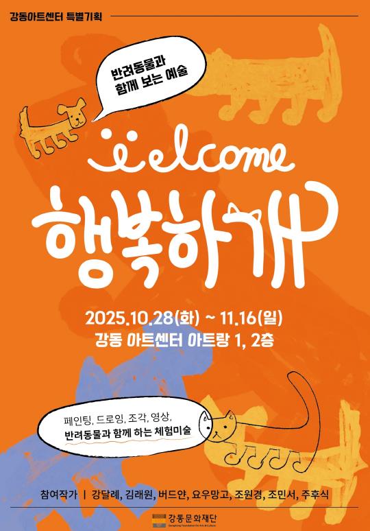 [뉴스노크=김인호 기자] 강동문화재단은 오는 10월 28일부터 11월 16일까지 강동아트센터 아트랑에서 반려동물과 함께 예술을 경험할 수 있는 전시 《행복하개展》을 선보인다.