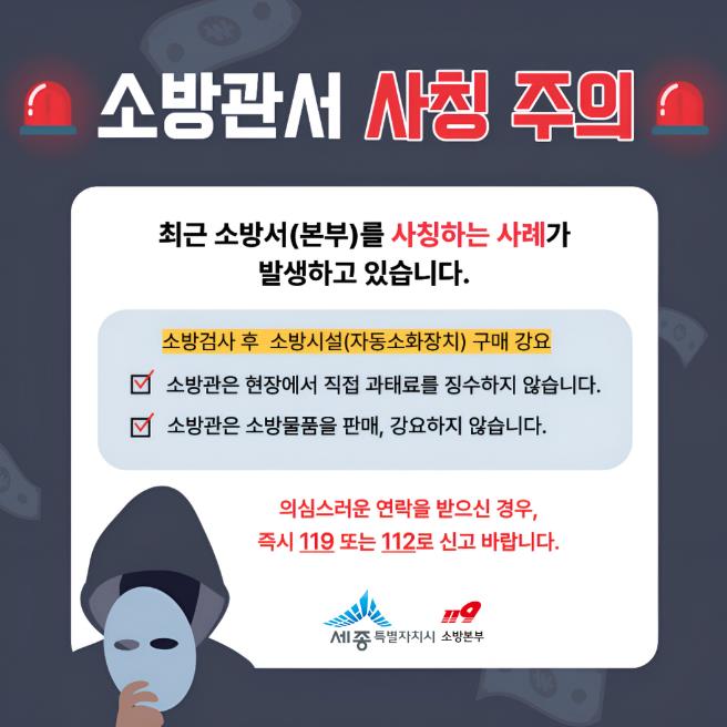 | ▲ '세종소방 사칭' 소방시설 구매 강요 주의하세요! |