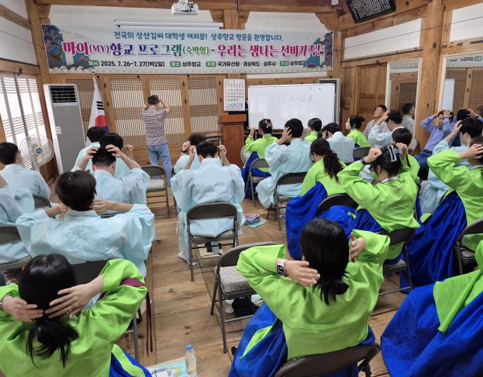 [뉴스노크=김인호 기자] 대설위 상주향교에서는 7월 26∼27일(1박 2일) 동안 상주향교 명륜당에서 국가유산청의 우리고장 국가유산 활용사업인 “상(賞)주고 상(償) 받으며 향교에서 놀아보자!”라는 주제로 “마이(my) 향교(숙박형) – 우리는 잼나는 선비가족!” 프로그램을 추진하였다.