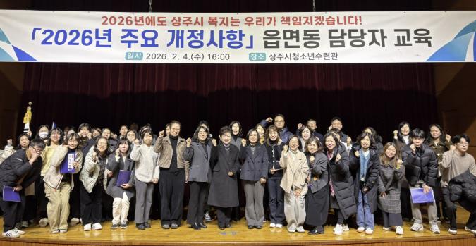 [뉴스노크=김인호 기자] 상주시에서는 지난 4일 청소년수련관에서 읍면동 공무원을 대상으로 2026년 주요 복지사업 개정사항에 대한 전달교육을 실시했다.
