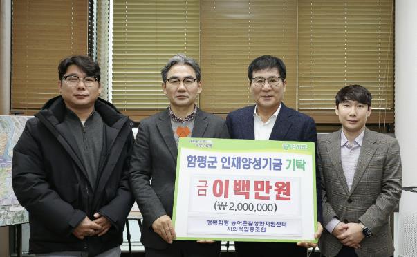 [뉴스노크=김인호 기자] 전남 함평군은 “지난 19일 행복함평 농어촌활성화지원센터 사회적협동조합이 함평군 인재양성기금에 200만원을 기탁했다”고 20일 밝혔다.