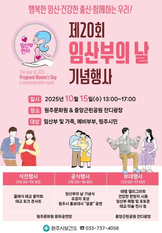 이어 오후 3시 30분부터 열리는 기념식에서는 임산부의 날 기념 선포식, 유공자 포상, 원주시 홍보대사 공훈의 축하공연 등이 진행될 예정이다.