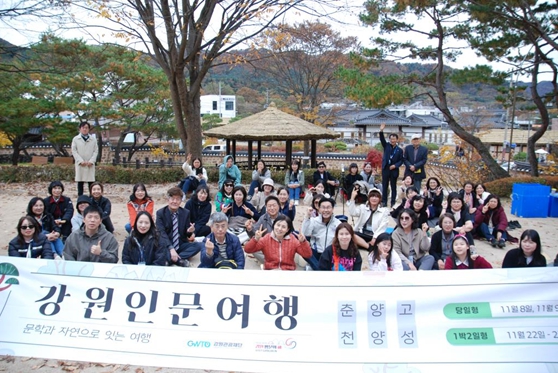 [뉴스노크=김인호 기자] 강원관광재단은 지난 11월 8일과 9일 이틀간 춘천 일원에서 인문학 테마 여행 프로그램을 운영해 130여 명의 참가자들이 인문학 프로그램을 즐겼다고 밝혔다.
