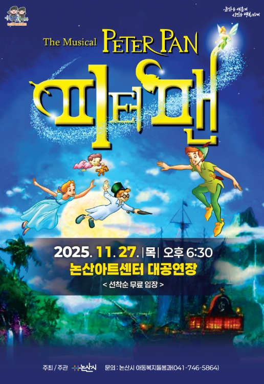 논산시는 27일 논산아트센터에서 어린이 뮤지컬 ‘피터팬’ 공연을 무료로 개최한다.