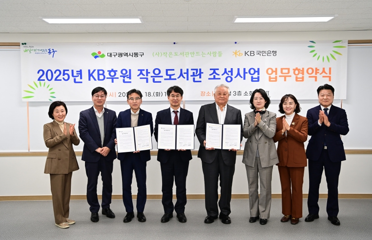 [뉴스노크=김인호 기자] 대구 동구청은 지난 18일, KB은행, (사)작은도서관만드는사람들과 ‘작은도서관 조성사업’을 위한 업무협약을 체결했다.