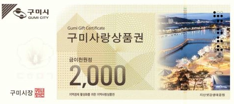 한편 구미시는 올해 총 1,500억 원 규모의 구미사랑상품권을 발행하고 있으며, 일반 발행 외에도 정책사업과 각종 행사와 연계한 86억 원 규모의 정책발행분을 추가 발행하는 등 지역경제 활성화에 박차를 가하고 있다.