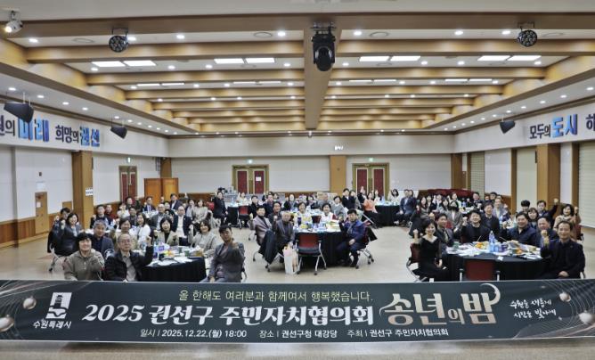 [뉴스노크=김인호 기자] 권선구 주민자치협의회는 2025년 12월 22일 오후 6시, 권선구청 대회의실에서 '2025 권선구 주민자치협의회 송년회'를 개최했다.