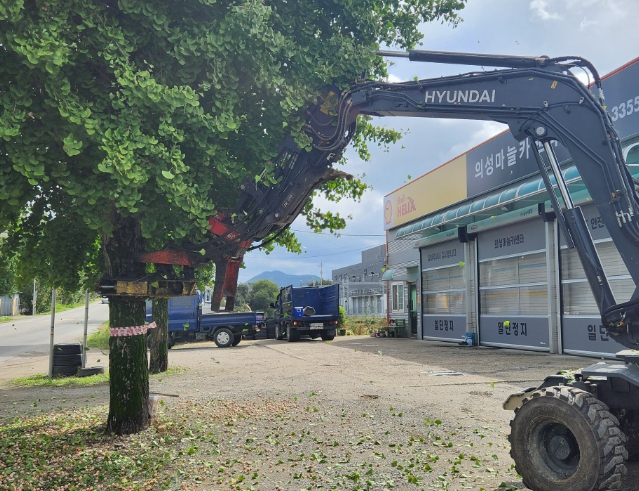 [뉴스노크=김인호 기자] 의성군은 지난 19일 은행나무에서 떨어지는 열매로 인한 주민 불편을 해소하기 위해 진동 수확기를 활용한 시범 채취 작업을 실시했다.