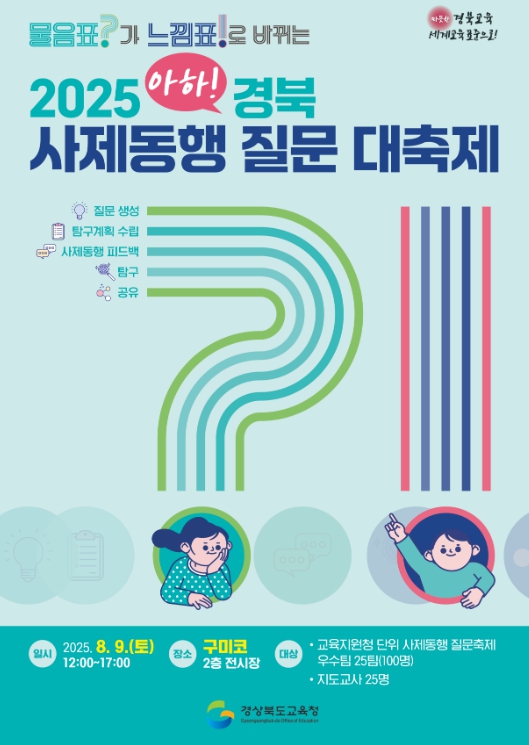 [뉴스노크=김인호 기자] 경북교육청은 오는 9일 구미시에 있는 구미코 2층 전시장에서 ‘2025 아하! 경북 사제동행 질문 대축제’를 개최한다고 밝혔다.