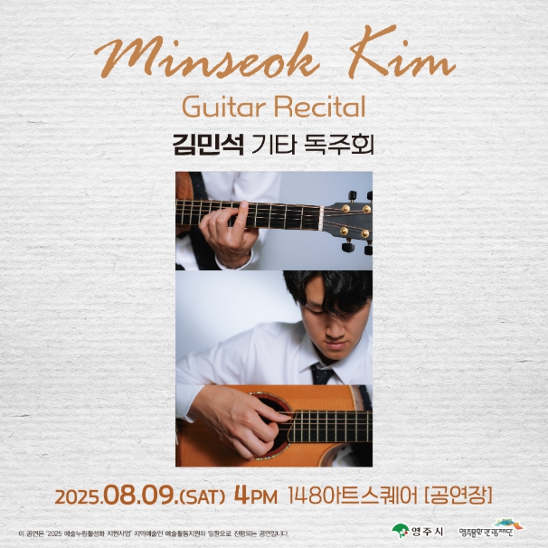 [뉴스노크=김인호 기자] (재)영주문화관광재단은 오는 8월 9일 오후 4시, 148아트스퀘어 공연장에서 교사이자 기타리스트인 김민석의 독주회 ‘기타로 떠나는 세계여행’을 선보인다.
