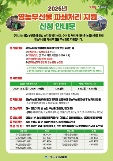 구미시 관계자는 “영농부산물 불법소각은 미세먼지와 산불의 주요 원인 중 하나”라며 “안전한 처리 문화를 현장에 정착시키고, 고령·취약 농업인의 작업 부담을 실질적으로 덜어 농촌 안전과 환경 개선에 기여하겠다”고 말했다.