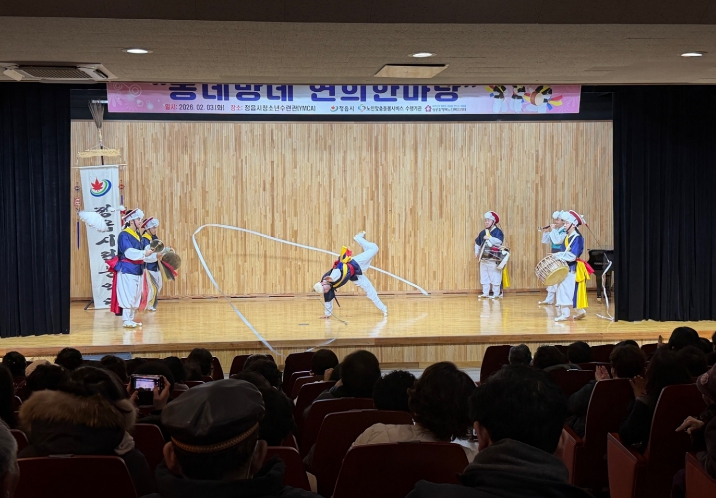 [뉴스노크=김인호 기자] 복지센터 강당 한쪽에서 장구 소리가 울려 퍼지자 어르신들의 얼굴에 금세 웃음꽃이 번졌다. 상모가 힘차게 돌고, 사자춤이 객석 사이를 누비자, 박수와 환호가 자연스럽게 이어졌다.