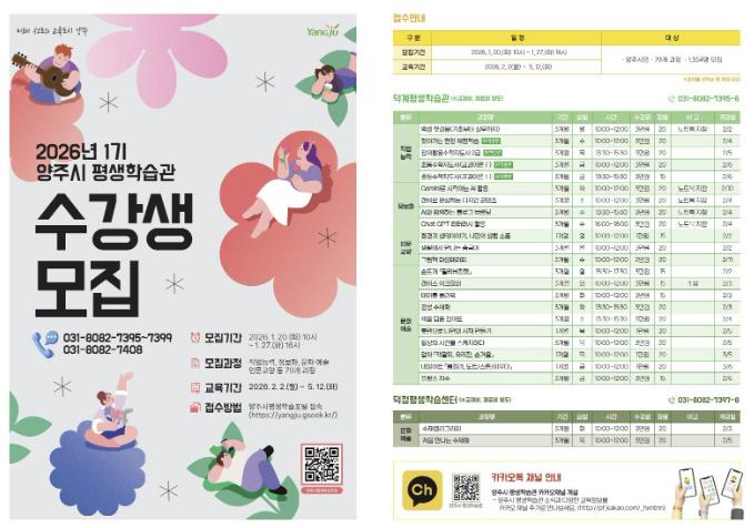 | ▲ 양주시, 2026년 1기 평생학습 프로그램 수강생 모집 |