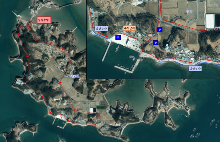 낙지포항으로 진입하는 주요 진입로 두 곳(새남쪽나루횟집, 한일횟집 인근)은 차량 진입이 제한되며, 비토삼거리에서 낙지포항까지 구간은 일방통행으로 지정·운영된다.