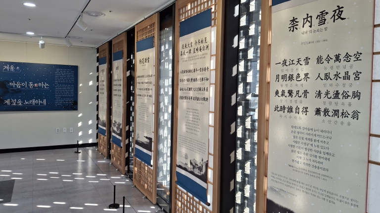 이번 특별전은 겨울을 주제로 한 한시를 족자 형태로 전시하여 선보이는 자리로, 대중에게 잘 알려진 역사 속 문장가들의 작품을 통해 한시라는 장르에 대한 거리감을 좁히고 관람객들에게 친근하게 다가가기 위해 기획됐다.