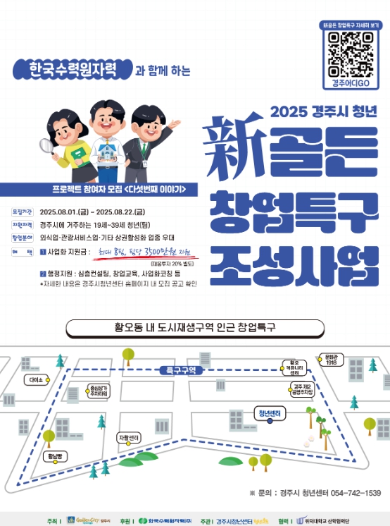 [뉴스노크=김인호 기자] 경주시는 오는 8월 1일부터 ‘2025년 경주시 청년 新골든 창업특구 조성사업 시즌4’에 참여할 청년 창업자를 공개 모집한다고 31일 밝혔다.