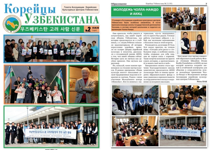 ▲ ‘우즈베키스탄 고려 사람 신문’에 게재된 전남학생공공외교스쿨 활동 모습.