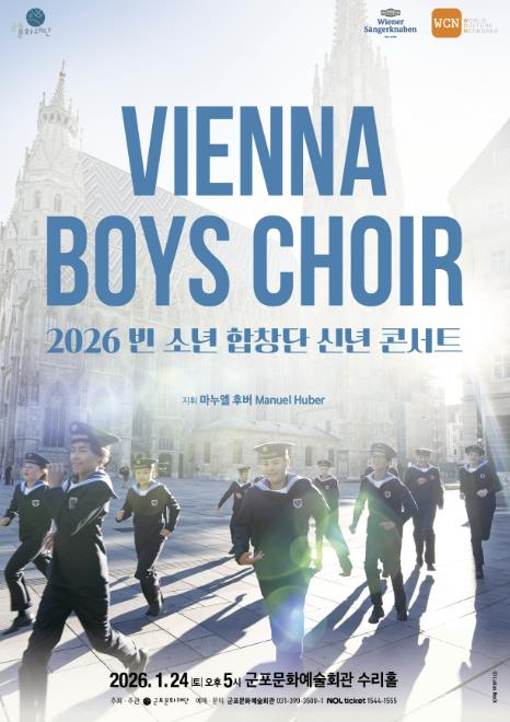 [뉴스노크=김인호 기자] 군포문화예술회관은 2026년 새해를 여는 기획공연으로, 500년의 역사를 지닌 세계 최고의 소년합창단 “빈 소년 합창단(Wiener Sängerknaben)”의 내한공연 '2026 빈 소년 합창단 신년 콘서트'를 오는 1월 24일(토) 오후 5시, 수리홀에서 개최한다.