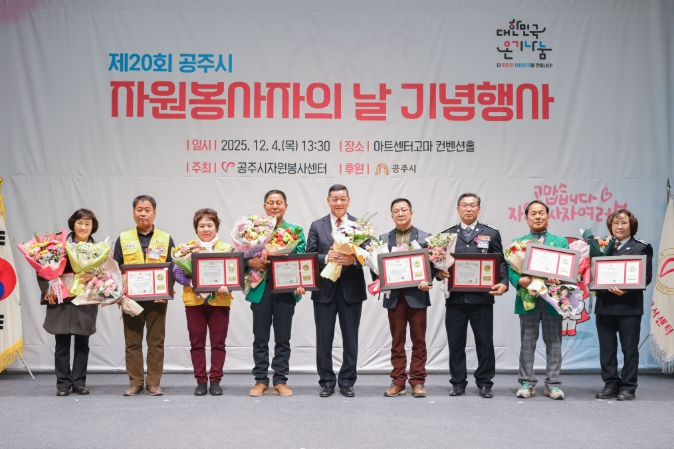 이숙현 공주시자원봉사센터장은 “그동안 지역사회를 위해 보이지 않는 곳에서 묵묵히 봉사해주신 자원봉사자 여러분 덕분에 공주가 더욱 따뜻하고 행복한 도시가 되고 있다”며 감사의 마음을 전했다.
