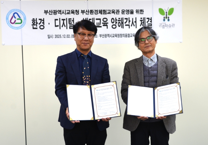 [뉴스노크=김인호 기자] 부산광역시교육청 창의융합교육원은 지난 2일 창의융합교육원에서 디지털곤충학습관과 부산환경체험교육관 운영을 위한 환경·디지털·생태교육 양해각서(MOU)를 체결했다고 밝혔다.