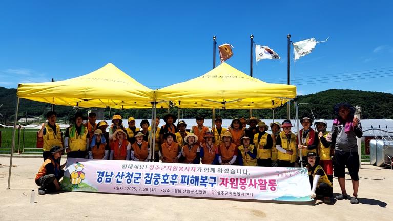 지난 2025년 7월 29일, 성주군자원봉사센터는 ‘성주군운영위원회’, ‘출동! 무조건재난지킴이봉사단’, ‘용암으뜸적십자봉사회’ 소속 자원봉사자들과 함께 경남 산청군 신안면 청현리 일대에서 수해 복구 자원봉사활동을 진행했다.