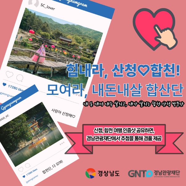 두 번째는 산청과 합천 관광의 조속한 회복을 지원하기 위한 인스타그램 여행(수해복구 봉사활동 방문 포함) 후기 경품 제공 이벤트이다.