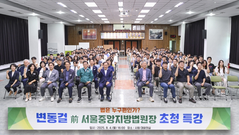 [뉴스노크=김인호 기자] 문경시는 지난 4일 시청 대회의실에서 변동걸 전 서울중앙지방법원장을 초청하여‘법은 누구편인가?’라는 주제로 공직자 소양함양 특강을 했다.