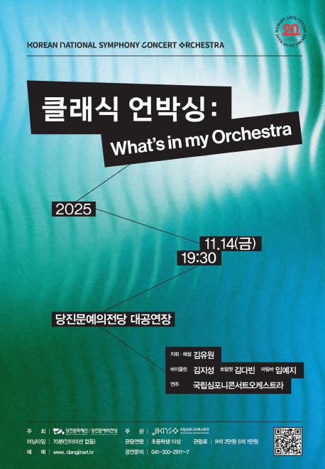 [뉴스노크=김인호 기자] (재)당진문화재단·당진문예의전당(대표이사 이원철)은 오는 11월 14일 금요일 오후 7시 30분, 당진문예의전당 대공연장에서 국립심포니콘서트오케스트라(이하 KNCO) 초청 공연‘클래식 언박싱 : What’s in my Orchestra’를 선보인다.