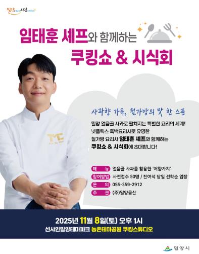 | ▲ 밀양시 농촌테마공원 쿠킹스튜디오에서 임태훈 셰프와 함께하는 쿠킹쇼&시식회 포스터 |