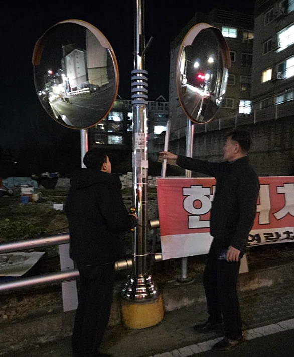 | ▲ 1. 야간순찰을 하며 가로등 점검을 하고 있다. |