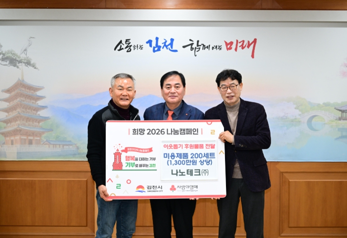 [뉴스노크=김인호 기자] 김천시는 지난 23일, 나노테크㈜(대표 김정헌)으로부터 어려운 이웃을 위한 미용 제품 200상자(1,300만 원 상당)를 전달받았다고 밝혔다.