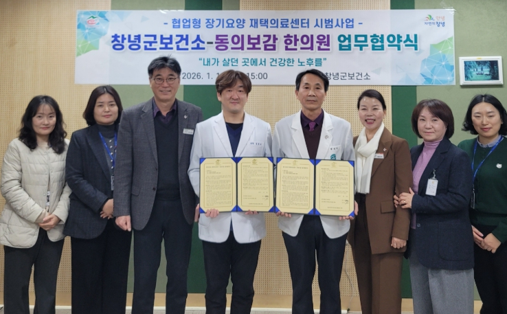 [뉴스노크=김인호 기자] 창녕군은 지난 14일 동의보감 한의원과 장기요양 재택의료센터 시범사업 운영을 위한 업무협약(MOU)을 체결하고, 지역 내 의료 취약계층을 대상으로 한 재택의료 서비스를 본격 추진한다고 밝혔다.