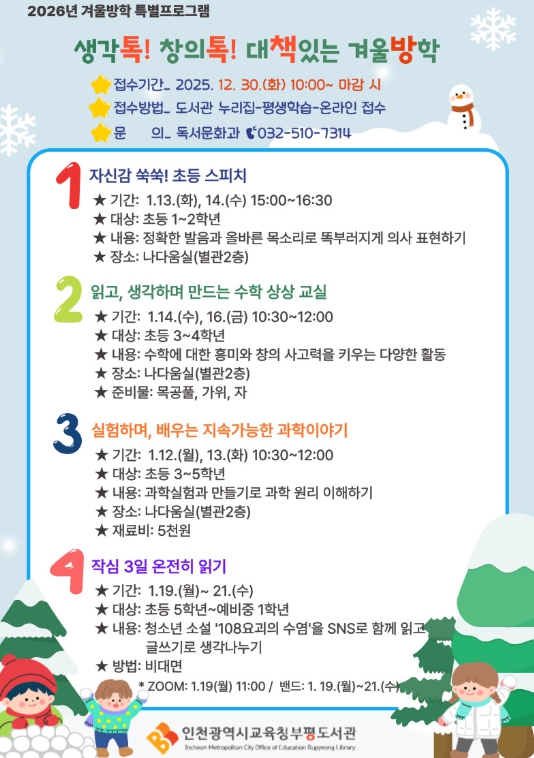 인천광역시교육청부평도서관, 2026년 겨울방학 특별프로그램 학습자 모집