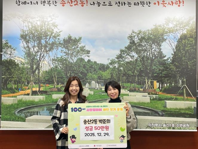 [뉴스노크=김인호 기자] 의정부시 송산2동주민센터는 12월 29일 송산2동 지역사회보장협의체 박준희 부위원장이 어려운 이웃을 돕기 위해 성금 50만 원을 기탁했다고 밝혔다.