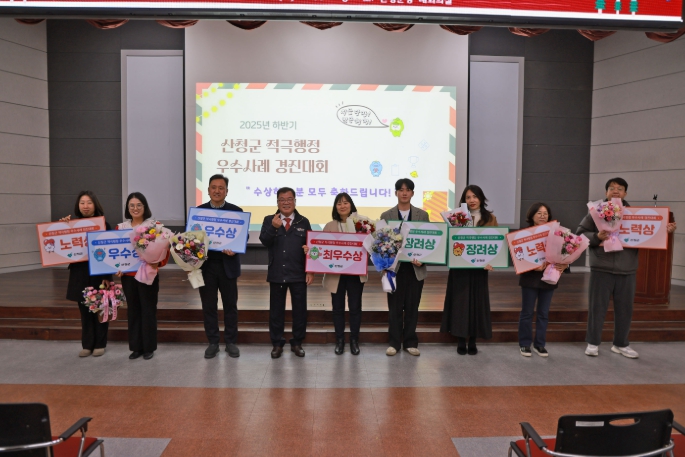 [뉴스노크=김인호 기자] 산청군은 지난 23일 2025년 하반기 적극행정 경진대회에서 1차 사전심사와 2차 대국민 온라인투표, 최종 적극행정위원회 심사를 거쳐 총 8건의 우수사례(최우수 1건, 우수 2건, 장려 2건, 노력 3건)를 선정했다고 밝혔다.