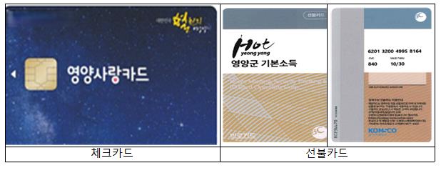 아울러, 미성년자, IT 취약계층, 2G 폰 이용자 및 본인명의 휴대전화가 없는 경우 등은 체크카드 발행이 제한 되며 영양군에서 별도 발급하는 선불카드 방식으로 기본소득 지급 될 예정이다.