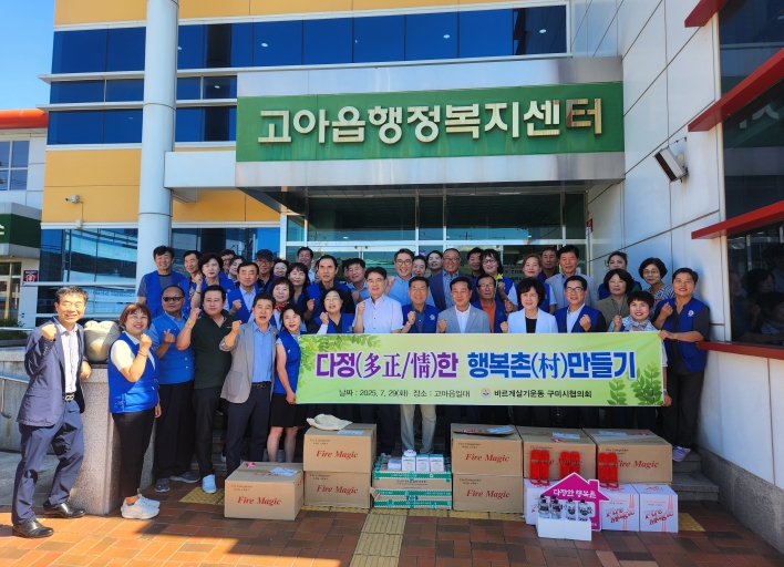 [뉴스노크=김인호 기자] 구미시는 지난 29일 바르게살기운동구미시협의회(회장 이재건) 주관으로 ‘다정(多正/情)한 행복촌 만들기’ 사업을 고아읍 항곡리 일원에서 전개했다. 이번 활동은 마을 맞춤형 봉사를 통해 주민의 생명과 재산을 지키고, 공동체 내 온정을 확산하는 데 목적을 뒀다.