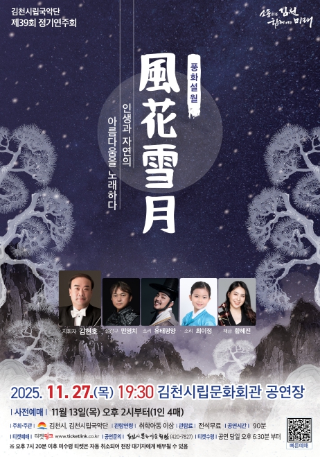 [뉴스노크=김인호 기자] 김천시문화예술회관은 11월 27일 목요일 오후 7시 30분에 시립문화회관 공연장에서 시립국악단 제39회 정기연주회를 개최한다.